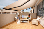 En tout temps, protégez-vous à l’ombre en tout confort avec l’auvent rétractable Brasilia Athena Plus avec rideau solaire.