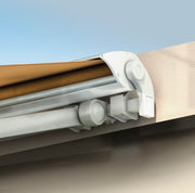 Le Brasilia Europa comble l’écart entre l’Athena et le Slim. Son boîtier protège le dessus et l’arrière de la toile lorsque l’auvent est fermé et remplace de façon élégante le boîtier d’aluminium installé sur certains auvents traditionnels.