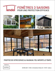 Tendal Porte patio Triple 3+1 de veranda 3 saisons 72 X 84 Droite à Gauche- Cadrage d'aluminium