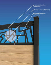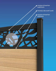 Le panneau décoratif de clôture ajoute une touche d'élégance à votre clôture de composite. Le panneau décoratif pour clôture est découpé au laser et est facile d'installation