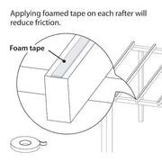 Ce ruban en mousse de polyéthylène blanche est conçu pour réduire le frottement entre les chevrons et les panneaux en polycarbonate EZ Glaze utilisés pour couvrir les patios, terrasses et pergolas.