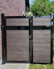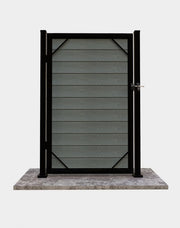 Le système de clôture permet la création de porte simple en composite. Cette porte s’adapte parfaitement à votre projet sans compromettre son élégance.