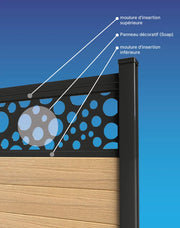 Le panneau décoratif de clôture ajoute une touche d'élégance à votre clôture de composite. Le panneau décoratif pour clôture est découpé au laser et est facile d'installation
